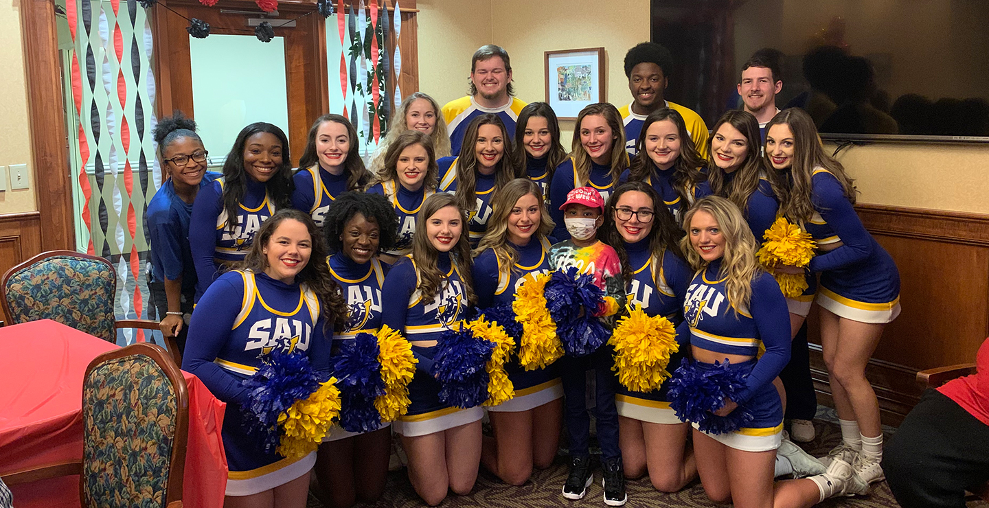 SAU Cheer has been part of a few Make A Wish programs but never to one that they knew was only given a few weeks to live. They knew that when we hugged her it would be the last time. It was a very emotional yet rewarding day. These cheerleaders got to help make her wish come true and got to see her sweet smile one more time.