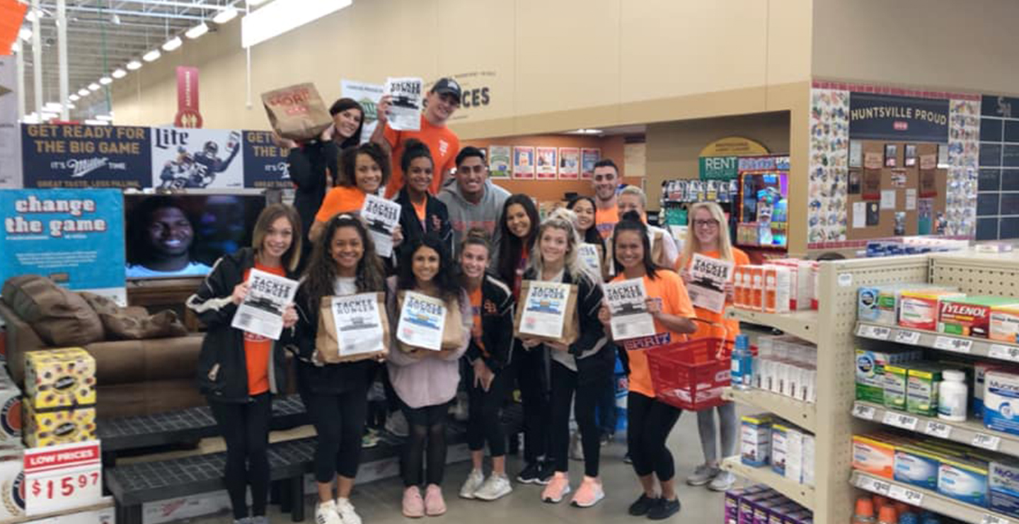 The Orange Pride Dance Team, Coed Team, All Girl Team, and Mascot Team of Sam Houston State University worked together to complete 75 hours of community service each this year. The Sam Houston Spirit Programs completed a total of 6,600 community service hours. These athletes helped give back to the community in many different ways. Some of their community service hours included:
