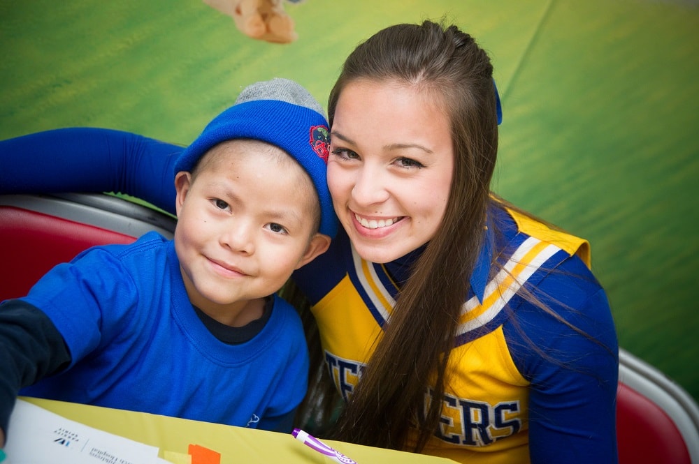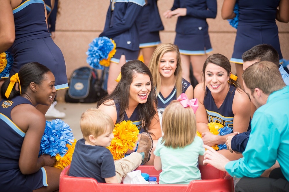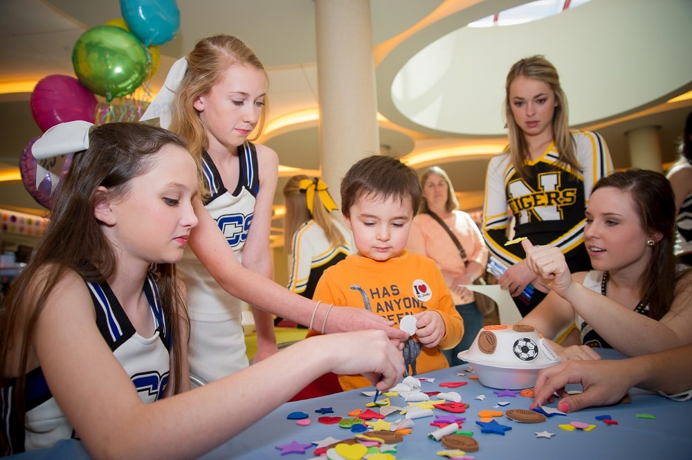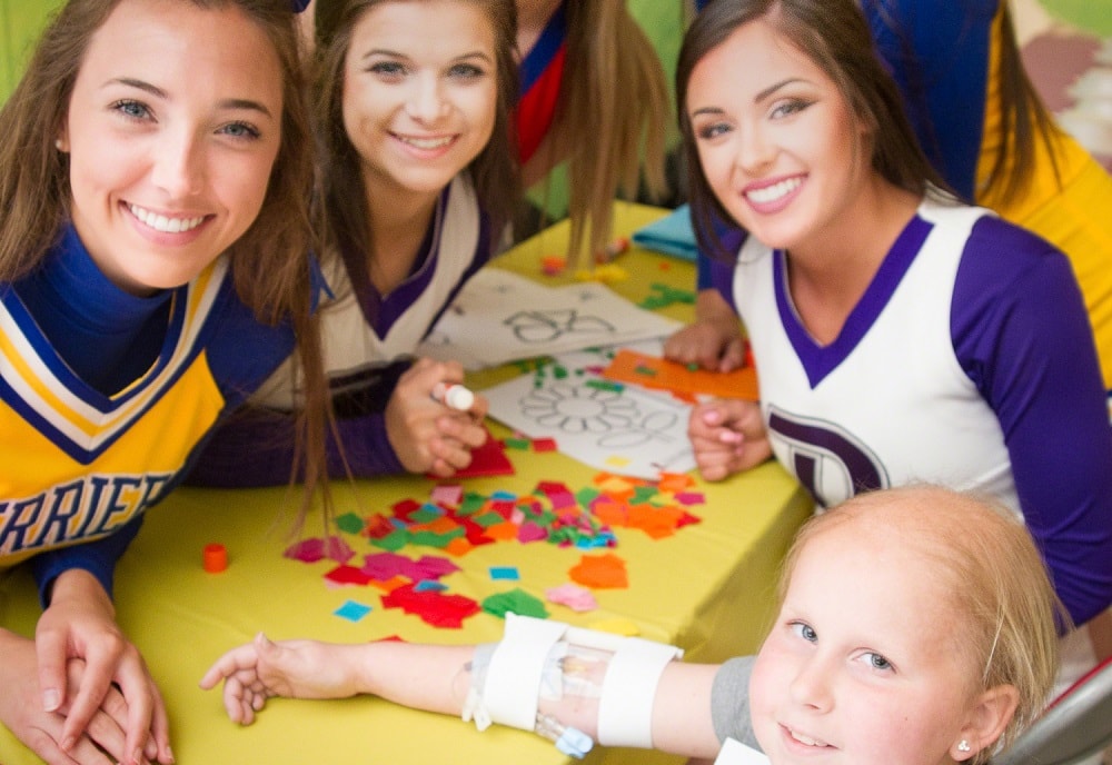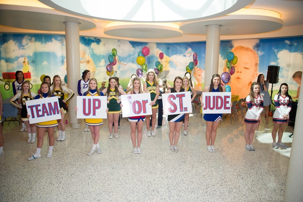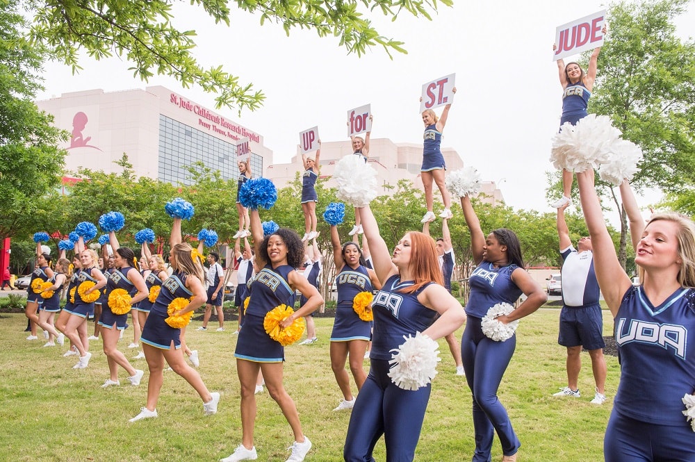Each summer, we ask every cheerleader or dancer attending a Varsity Spirit camp to send fundraising letters to friends and family around the country, asking for donations to the renowned hospital. In the fall, the fundraising continues at Team Up for St. Jude Spirited by Varsity Game Day events. Cheerleaders and dancers invite their student bodies, teachers and communities to join fundraising efforts by hosting a spirit week, filled with class challenges, pep rallies and a game benefitting St. Jude. Cheerleaders and dancers have already raised millions for this amazing organization.