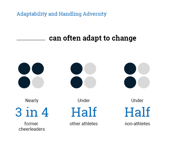 Nearly 3 in 4 former cheerleaders can often adapt to change, compared to under half of others: